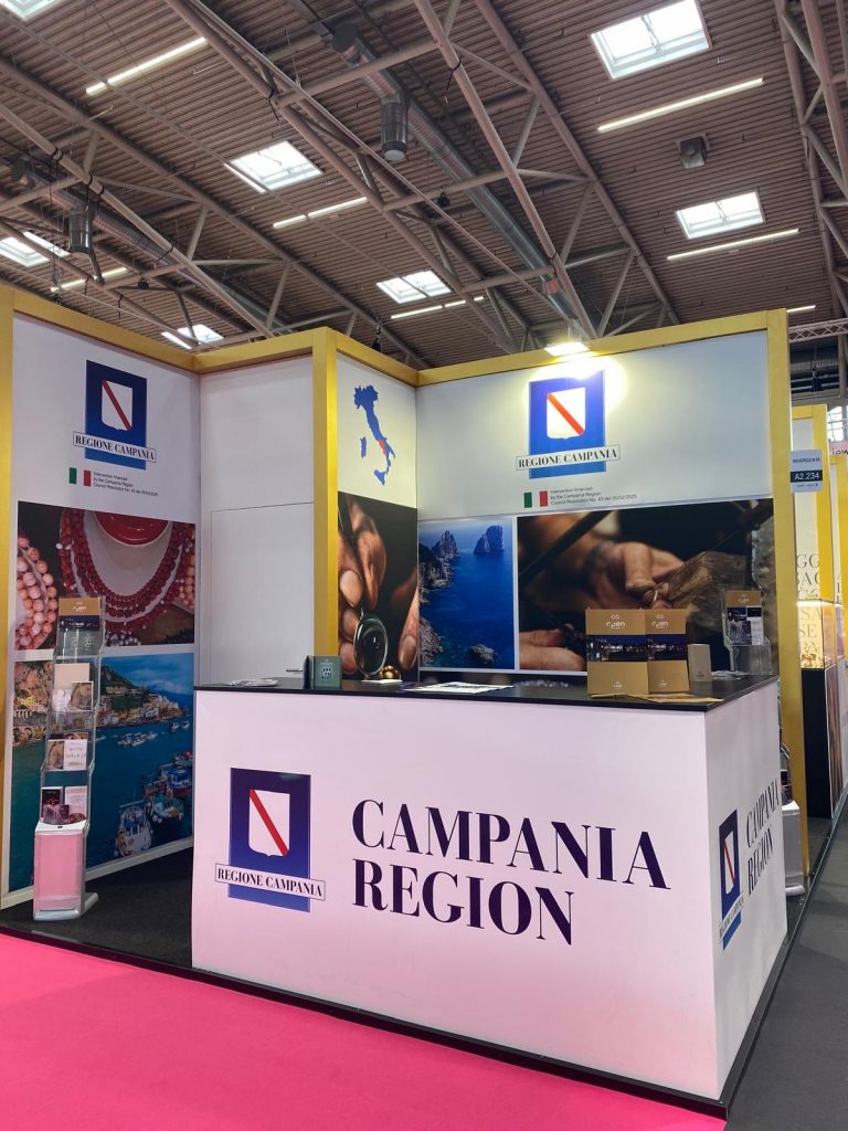 Innerhalb der Messe zeichnete sich der Stand der Region Kampanien als Schaufenster der Exzellenz aus und beherbergte sieben renommierte Unternehmen des kampanischen Goldschmiededistrikts. Diese präsentierten ihre Kollektionen sowie die Spitzenleistungen der gesamten Lieferkette, darunter auch Anbieter von Rohstoffen und Edelsteinen, mit besonderem Fokus auf die Korallenverarbeitung: